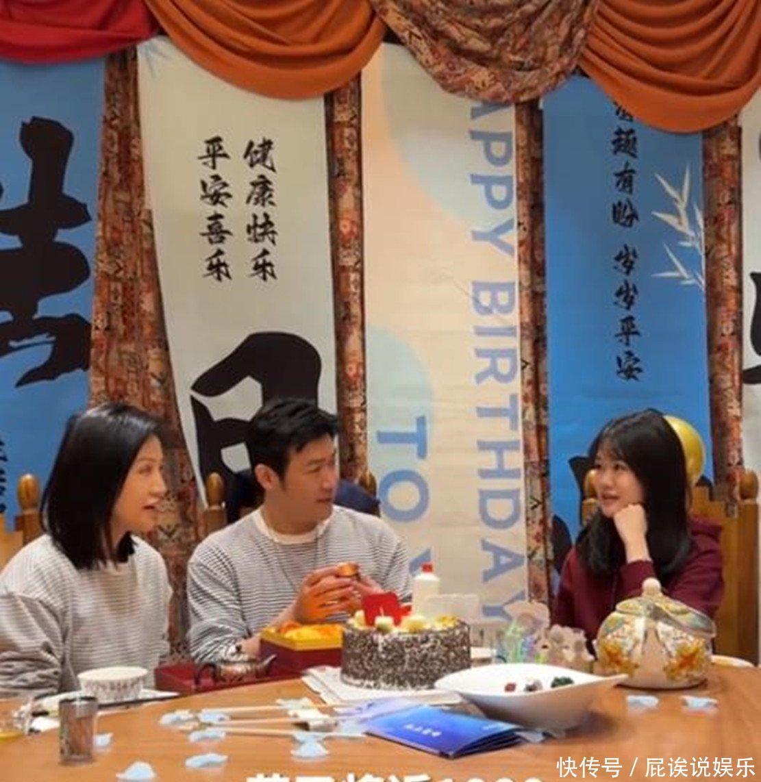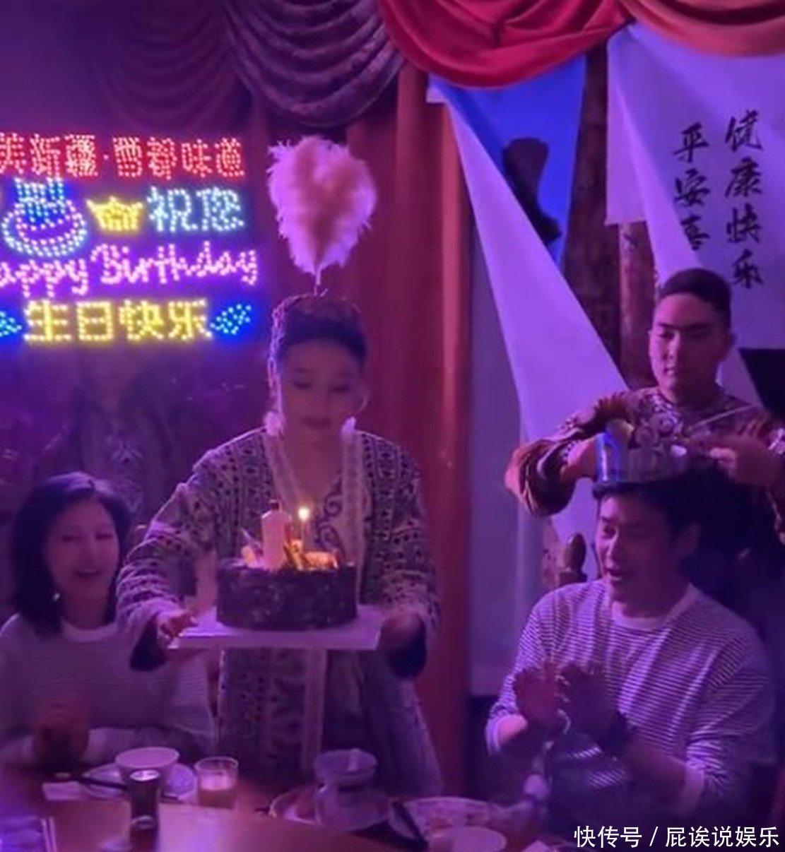 四口之家快吃完时,餐厅服务员端来了蛋糕,还有位服务员专门为陆毅跳了支生日舞,现场一下子变得热闹非凡。