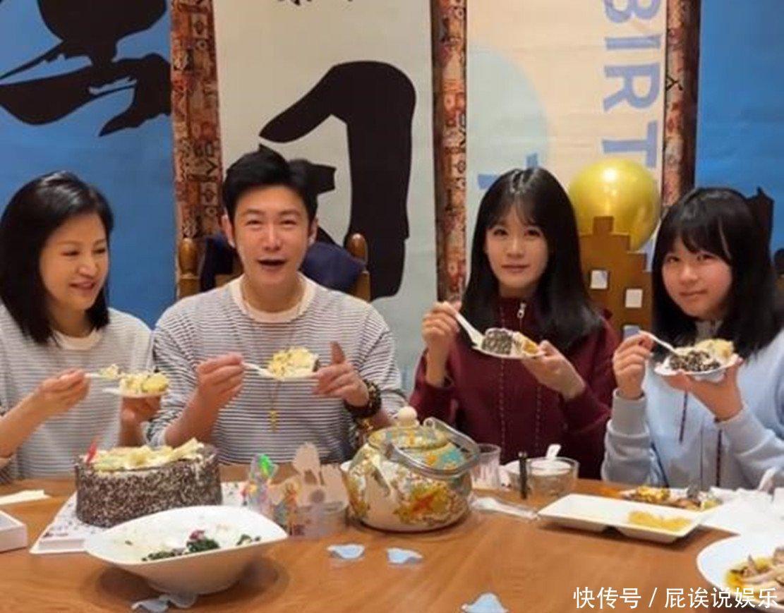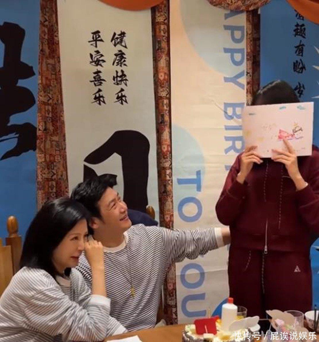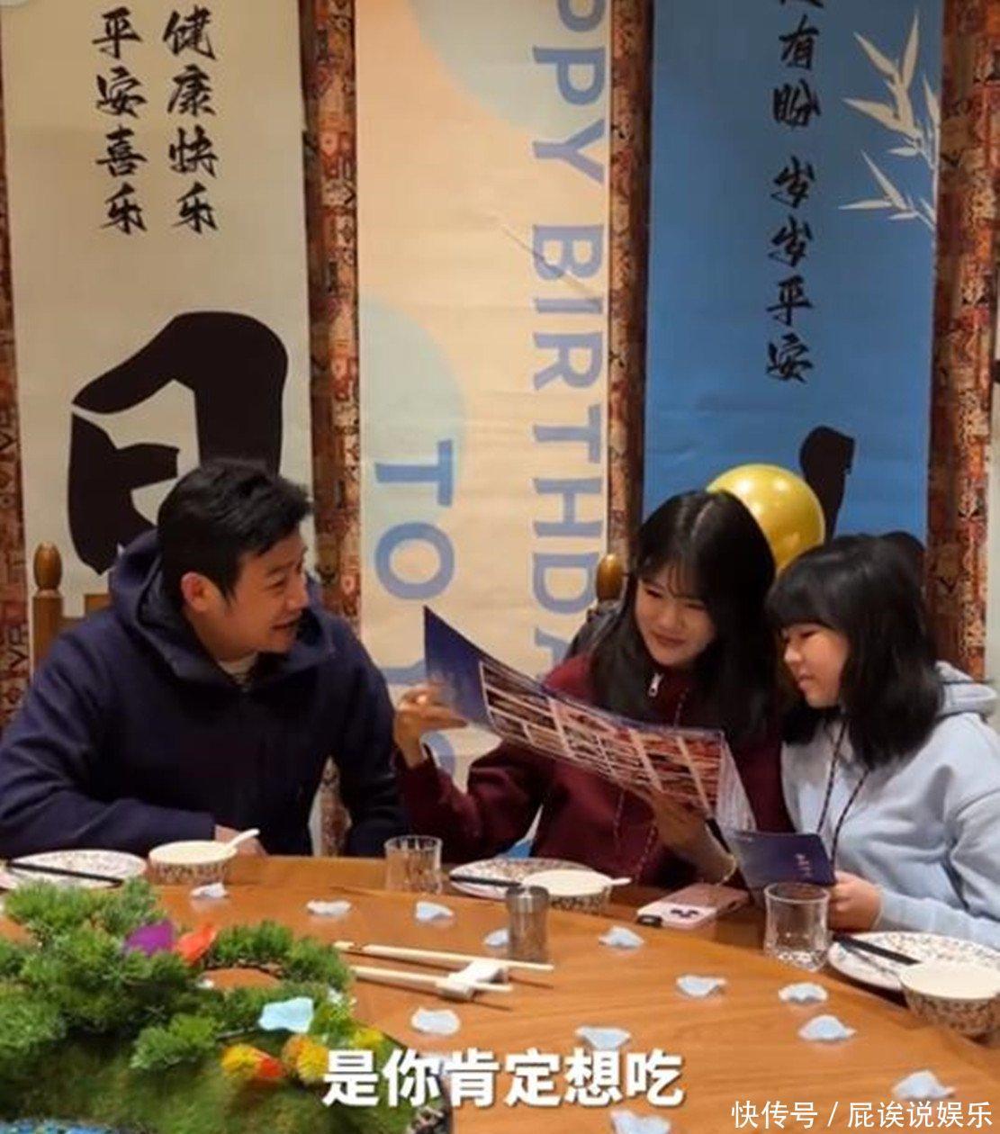 陆毅一走进包间,就被大女儿拉着坐到了主座上。平时他们一家四口出去吃饭,都是陆毅负责点菜,但这次两个女儿似乎想表达对爸爸的喜爱,便抢着要自己点菜。