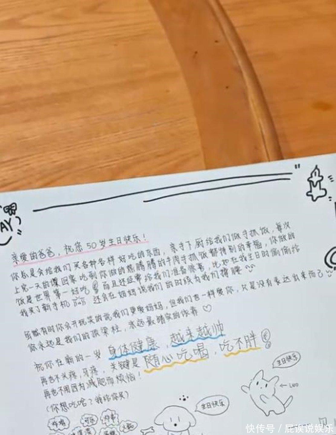 就在刚才,鲍蕾在她的社交账号上晒出了全家为陆毅庆生的温馨画面。镜头里,两个宝贝女儿正忙着给爸爸做生日贺卡,还亲手写了信。有意思的是,贝儿和妹妹小叶子都是用左手写字呢。从鲍蕾后面发的照片看,女儿们写给陆毅的信,字迹还挺工整漂亮的。