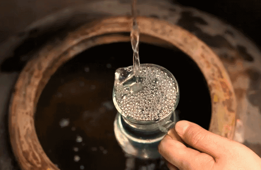 酒越老熟,越稠润,还有明显的挂杯痕迹, 就像美人的眼泪一般。